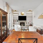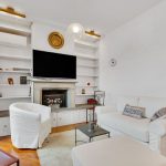 L’ingresso si apre sul soggiorno ampio e invitante, dove l’arredo, un’armoniosa fusione di moderno e antico, si sposa perfettamente con un’atmosfera di raffinata praticità con mobilio su misura e armadiature a scomparsa, anche per contenere stampante, computer e quanto necessario per un agevole lavoro da remoto. Questo è anche il luogo ideale dove trascorrere serate rilassanti davanti al camino di design, incastonato nella libreria, e dove guardare il proprio film preferito sul grande schermo televisivo che, dal centro della parete, offre la visione perfetta da ogni angolo della sala.