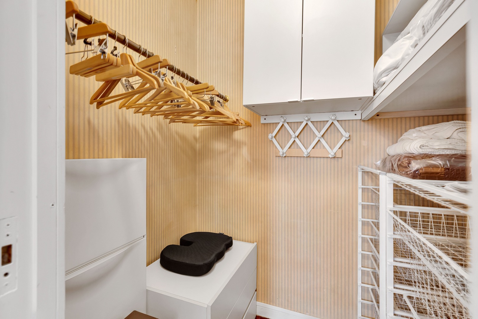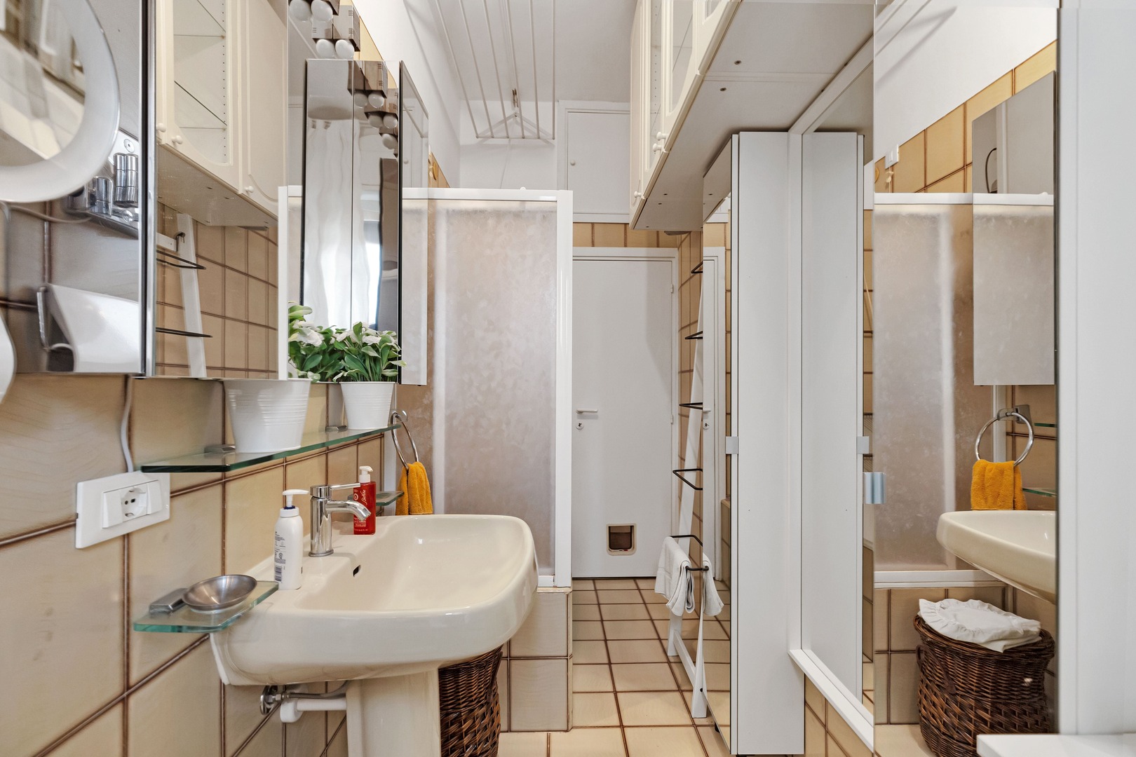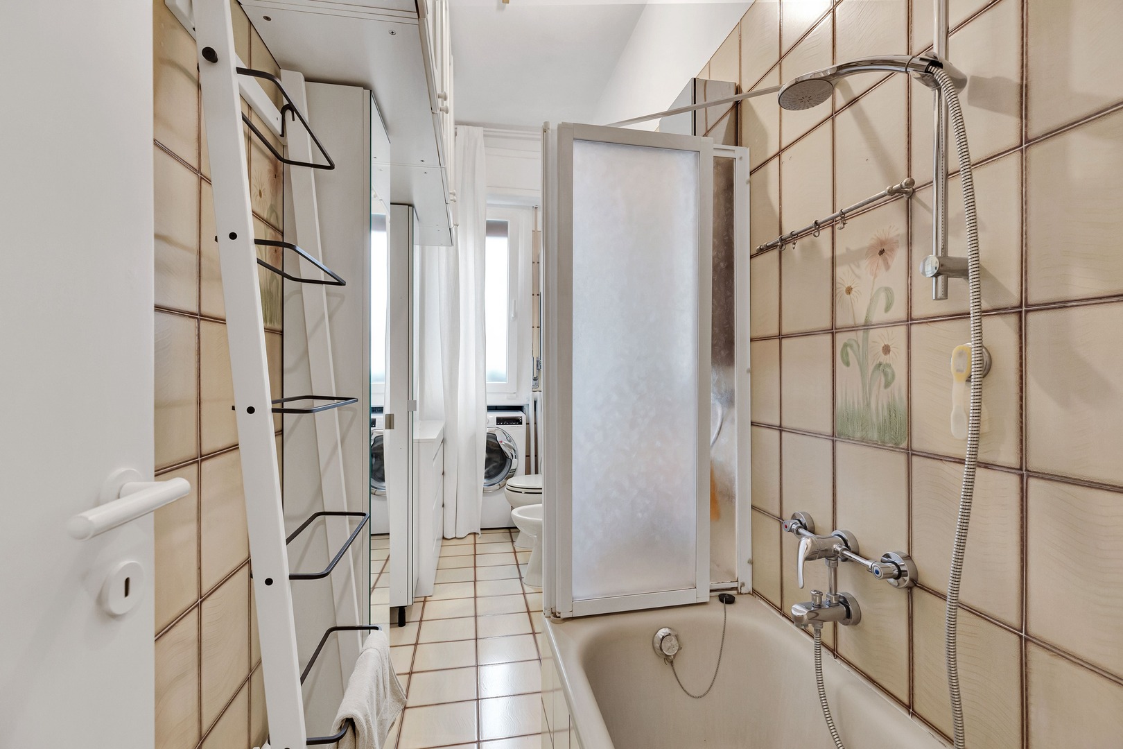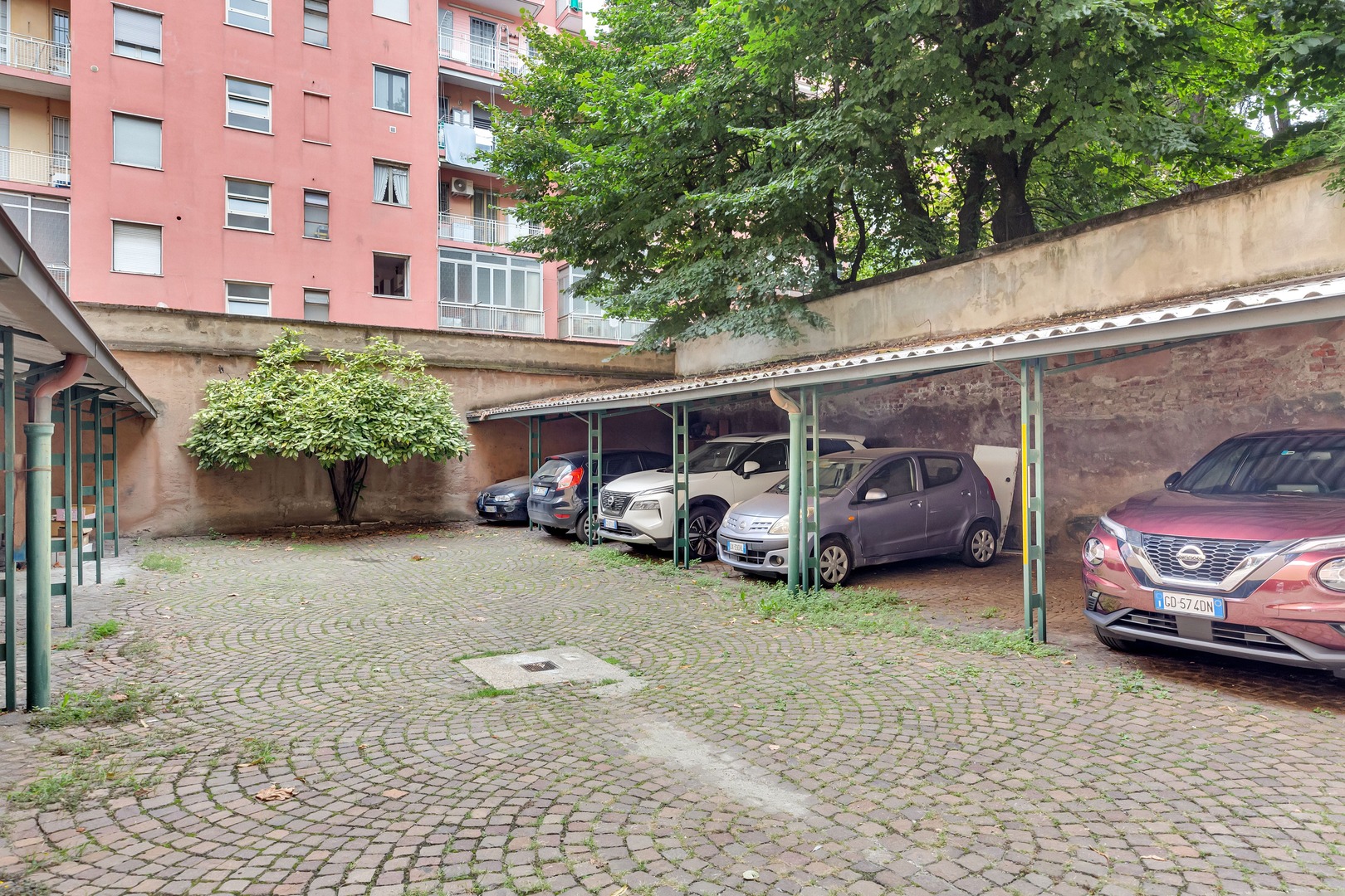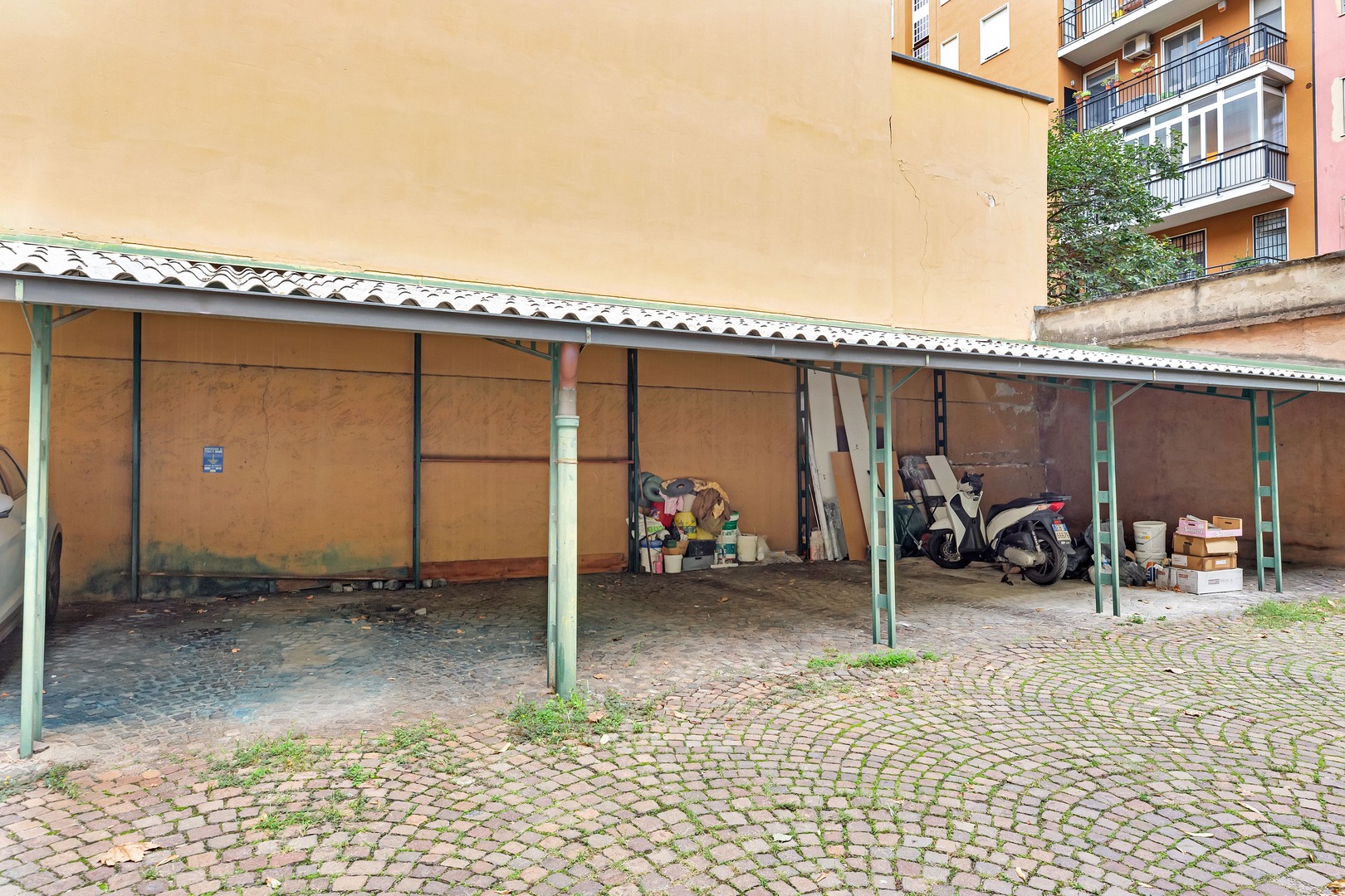 Oltre alla cantina, asciutta e spaziosa, anche i ripostigli in quota all’interno dell’appartamento, offrono spazio aggiuntivo per stivare comodamente tutto ciò che si desidera avere a portata di mano. Nel cortile dello stabile, è a disposizione anche un comodo e ampio posto auto coperto.